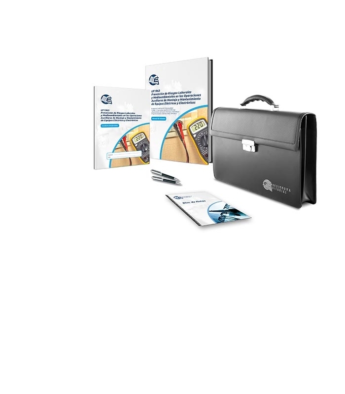 Este conjunto de materiales didácticos se ajusta a lo expuesto en el itinerario de aprendizaje perteneciente a la Unidad Formativa UF1963 Prevención de Riesgos Laborales y Medioambientales en las Operaciones Auxiliares de Montaje y Mantenimiento de Equipos Eléctricos y Electrónicos regulada en el Real Decreto 1077/2012, de 13 de Julio, que permita al alumnado adquirir las competencias profesionales necesarias para la Prevención de Riesgos Laborales y Medioambientales en las Operaciones Auxiliares de Montaje y Mantenimiento de Equipos Eléctricos y Electrónicos.